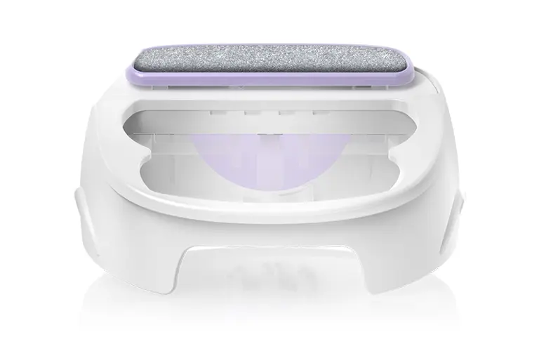 The rounded head gently adapts to contours. The floating foil and trimmer delicately adapt to the contours of the female body. This guarantees a perfectly close shave with less pressure and more comfort.